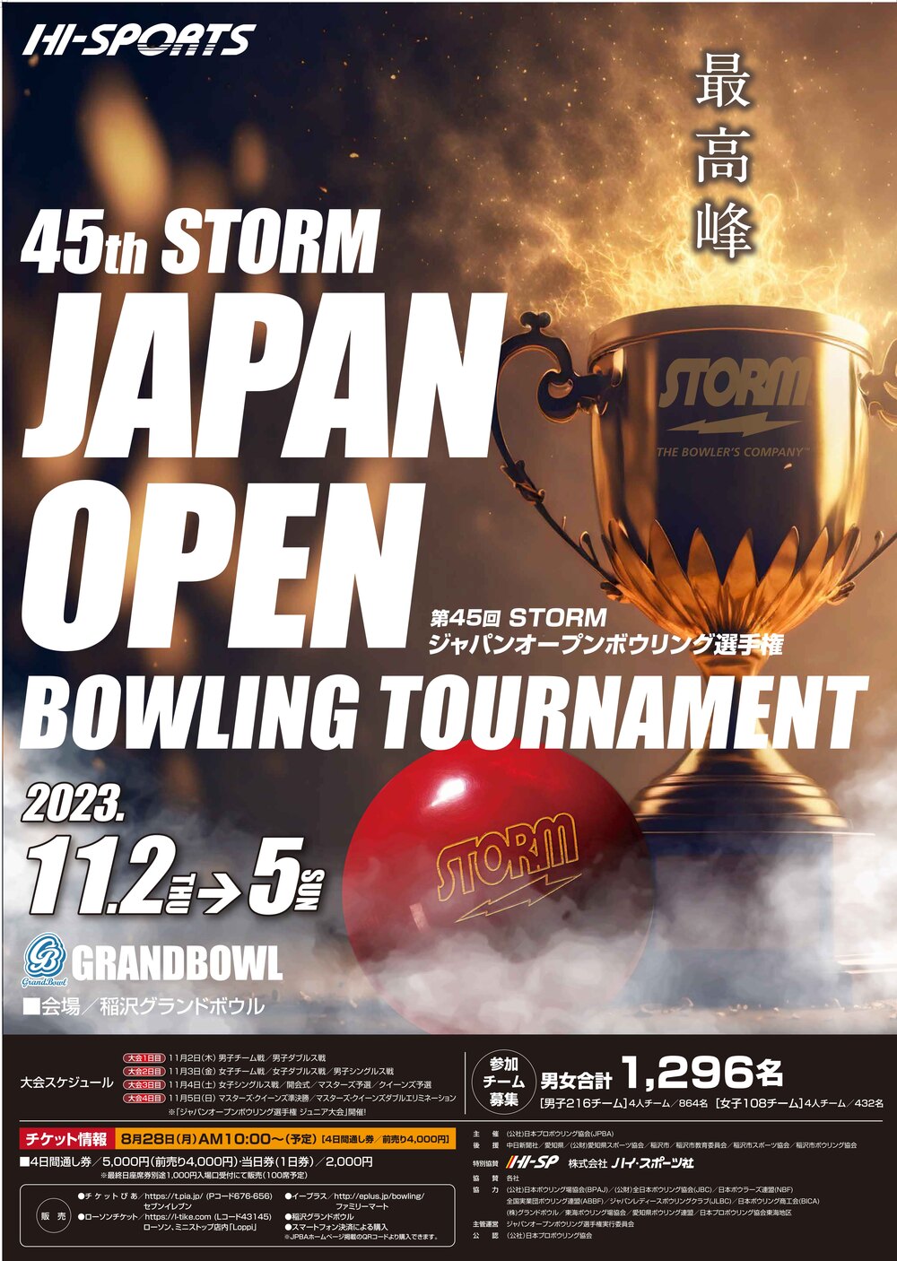 今年で第45回を迎える伝統あるプロアマによるボウリングトーナメントで、プロとアマがチームを組んで全国から1200名の選手が出場する日本最大規模のボウリング選手権です。会場もギネスブックに掲載される世界一の1フロア116レーンを持つ愛知県の稲沢グランドボウルにて開催されます。冠スポンサーにボウリング用品メーカーのSTORMを掲げるハイスポーツ社。実力のある男女シードプロから、注目の若手プロボウラーや日本を代表するトップアマチュアなど日本のトップボウラーが大集結。チーム戦と個人戦でしのぎを削ります。今年もハイレベルな熱戦が繰り広げられます。