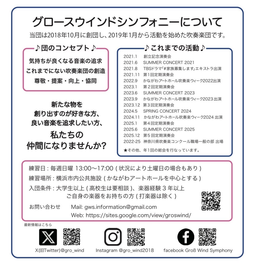 2019年始動!の吹奏楽団、グロースウィンドシンフォニーです♫