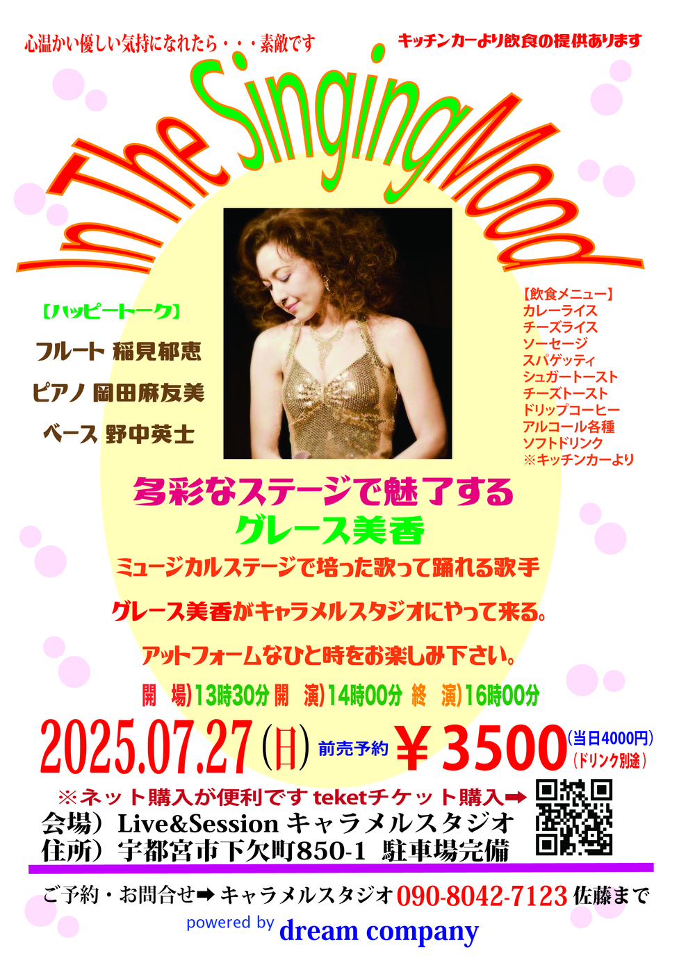 グレース美香がお馴染みの映画音楽からスタンダードジャズ、ハワイアンを歌います。