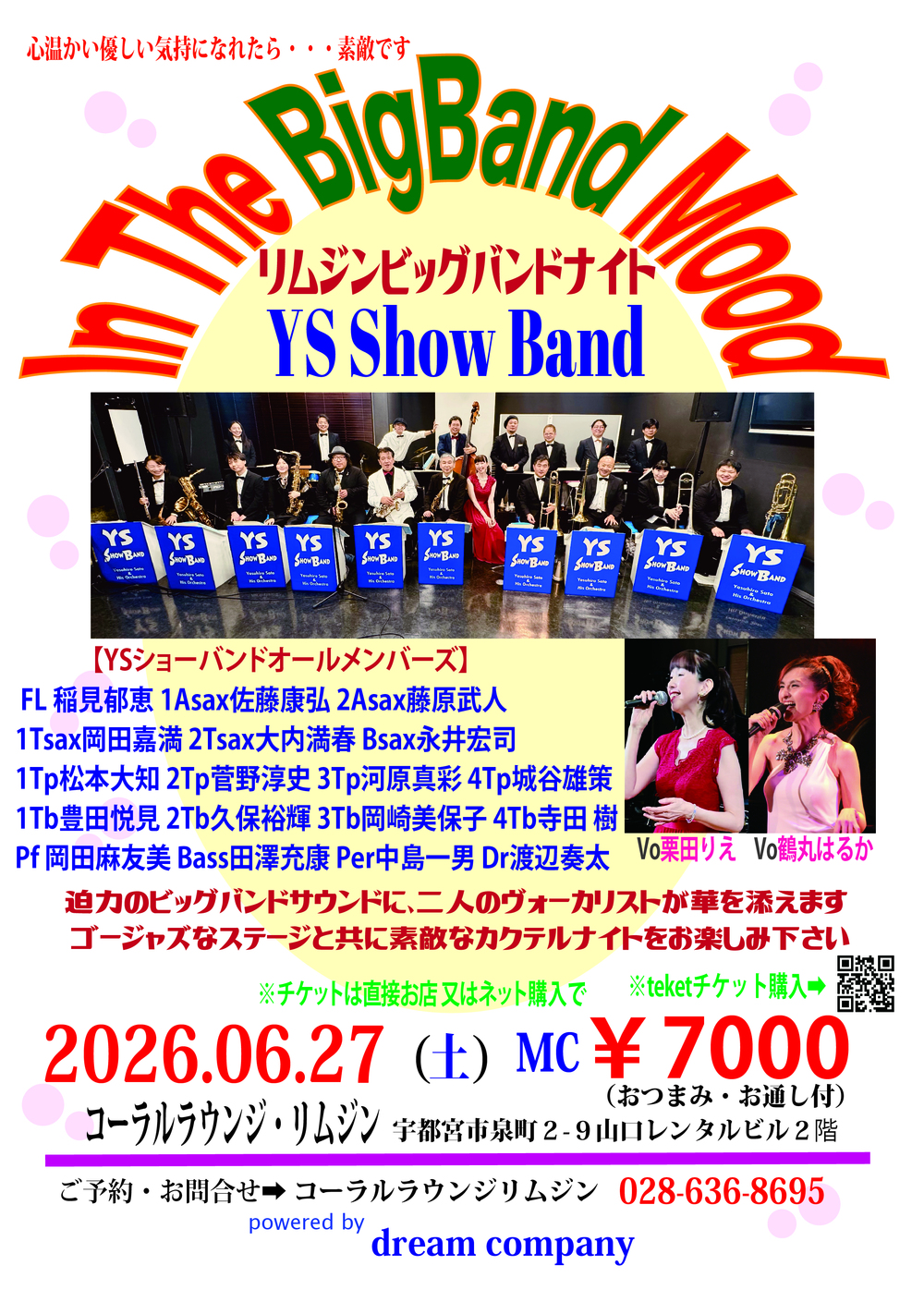 YSビッグバンドの迫力ある演奏に二人の女性ヴォーカリストが華を添えます。