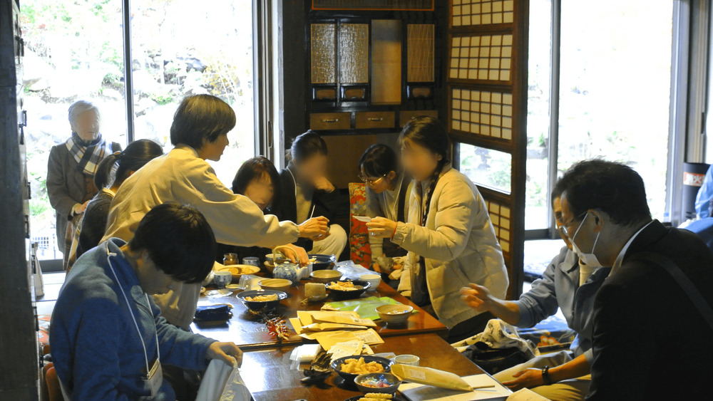 会場には飲食できるスペースがございますので、お弁当などを持参いただき、お昼ご飯などを食べることも可能です。蛍雪寮には、10:00から入れます。