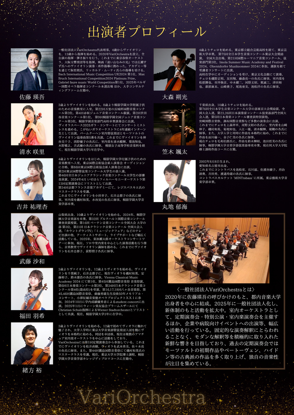 佐藤瑛吾,清水咲里,吉井祐理杏,武藤沙和(以上ヴァイオリン)、福田羽希,緒方裕(以上ヴィオラ)、大森朔光,笠木颯太(以上チェロ)、丸地郁海(コントラバス)