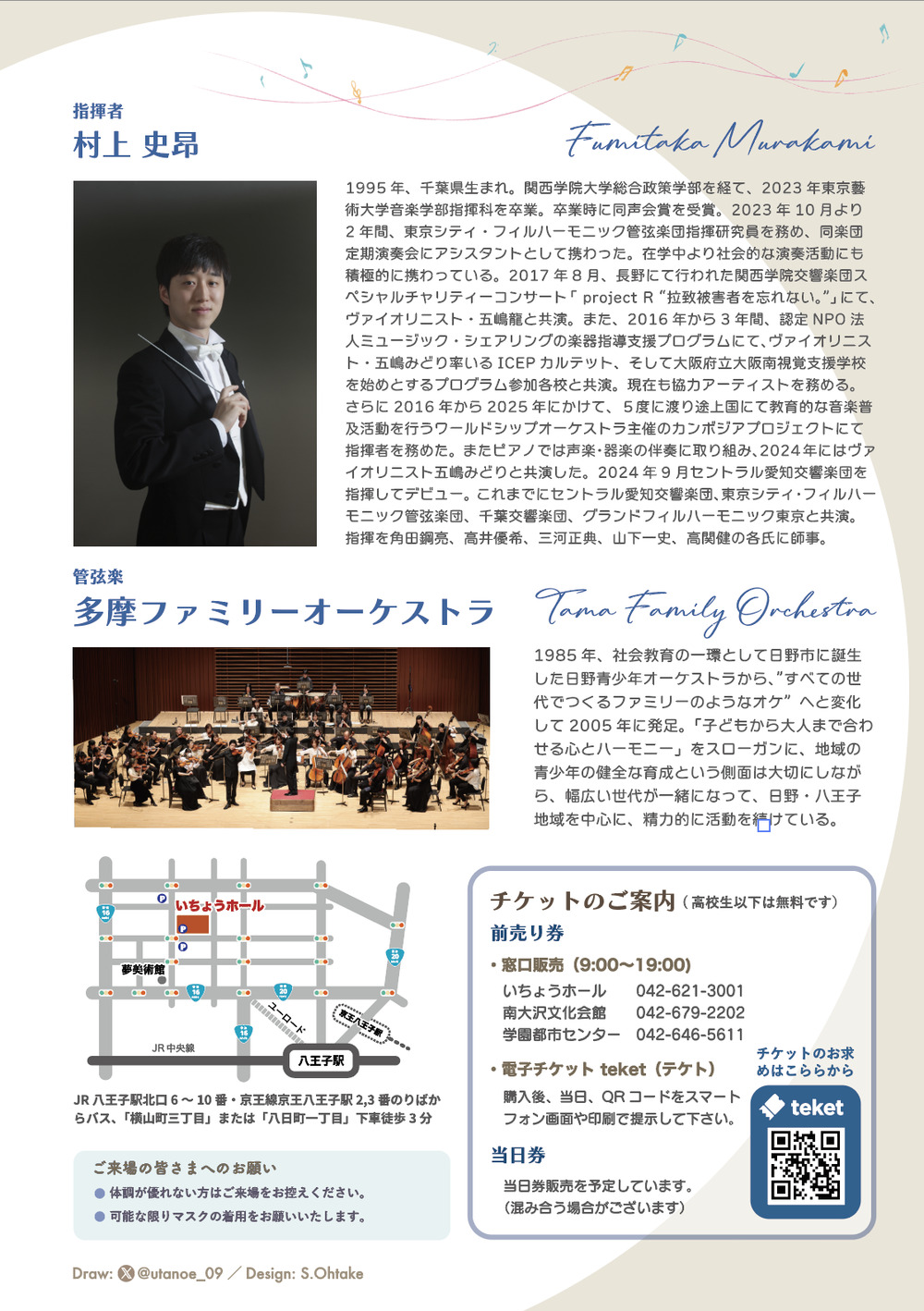 若手実力指揮者である村上史昂先生を迎え、多摩ファミとしては久しぶりの後期ロマン派交響曲、それも要望の多かったドヴォルザークの《新世界より》に挑みます!
