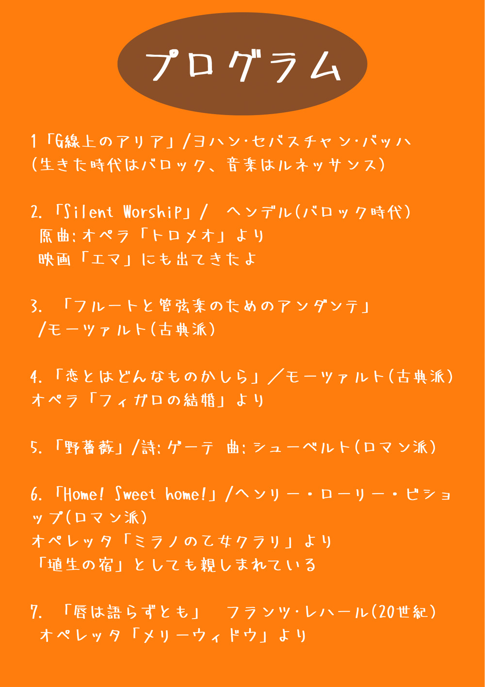 演奏前に中世ヨーロッパなどの時代背景の解説がついているので、場面をイメージしながら、より深く歌詞と音楽の両方をお楽しみ頂ける。