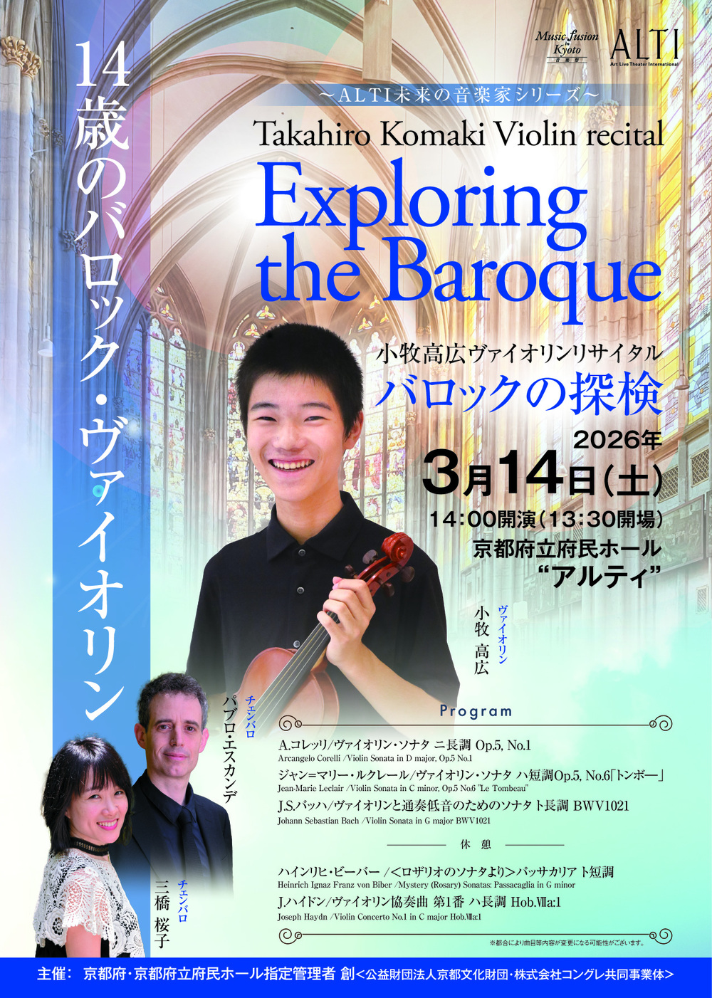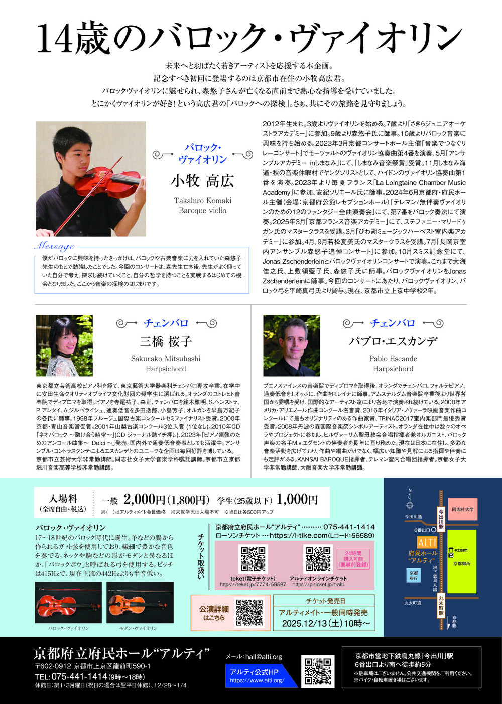 繊細で豊かな音色を響かせる「バロックヴァイオリン」に魅せられた14歳が紡ぎ出す特別なコンサートへ、ぜひお越しください♪
