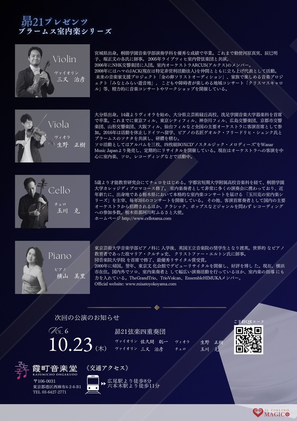 昴21が挑むブラームス室内楽シリーズ 第5弾