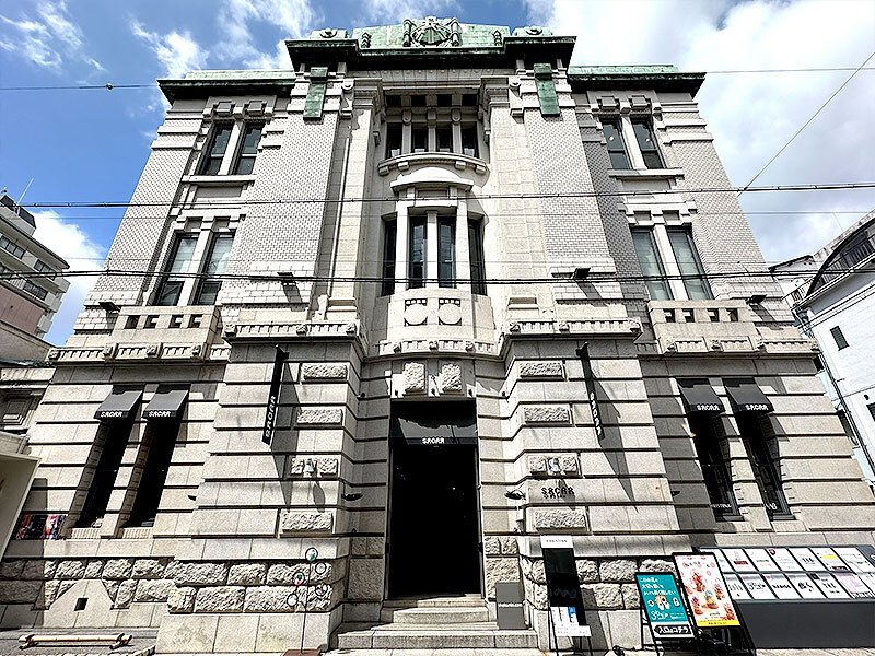 近代建築立ち並ぶ三条通にそびえる、大正モダンな銀行建築を特別見学。重厚なデザインのなかに、円や四角といった幾何学を駆使するセセッションスタイルが特徴的です。シンボリックなメダリオン、可愛らしい手摺の階段、工夫が施された小窓まで。近代建築リノベーションの先駆けとなった旧不動貯金銀行、SACRAビルを堪能します。