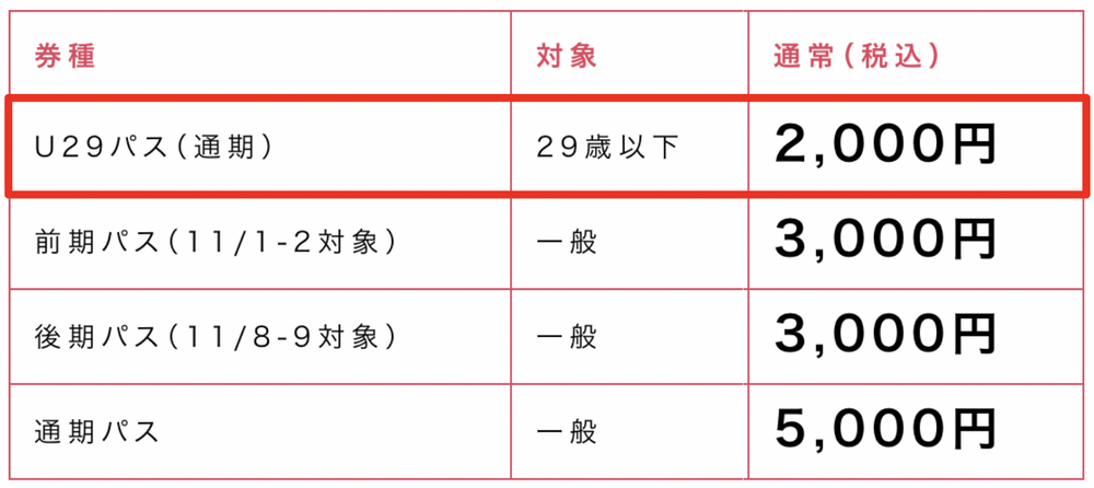 ・前期パス:11月1日(土)、2日(日)のみ対象