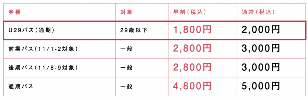 ・前期パス:11月1日(土)、2日(日)のみ対象