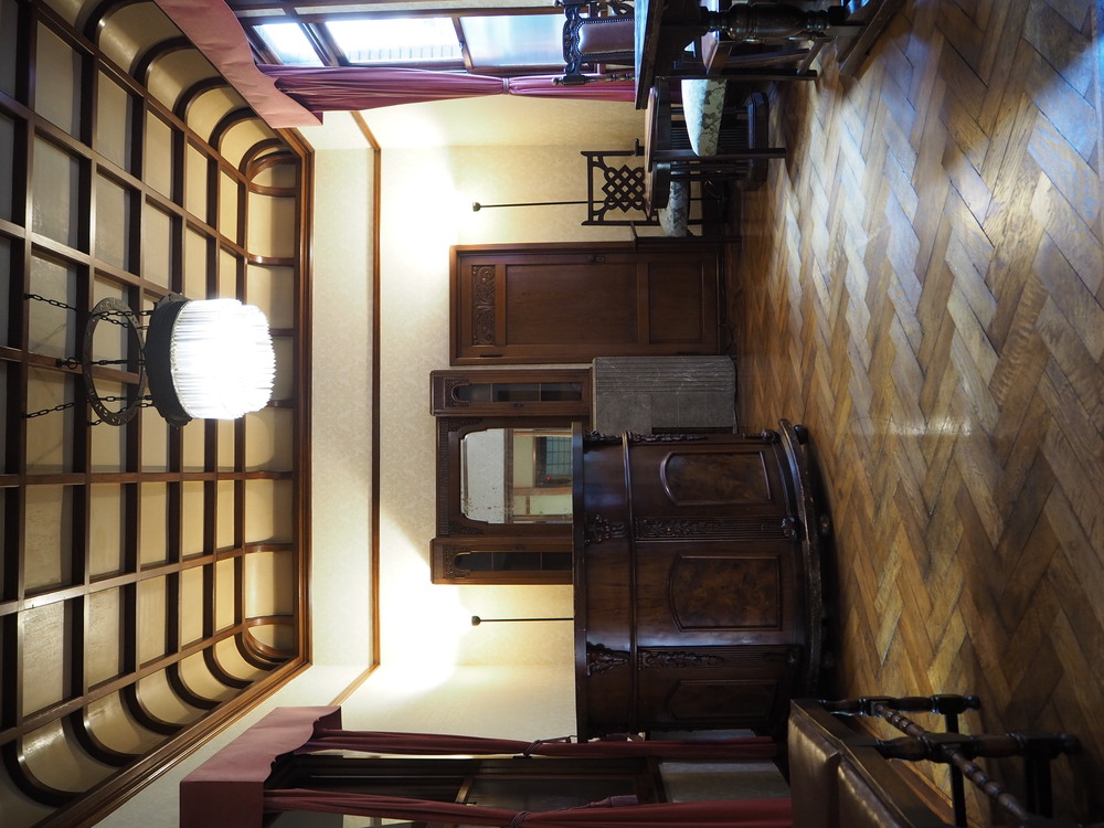 大正時代の豪商が贅を尽くした迎賓館を、くろちく重役の山内さんが特別案内。洋館部分は“関西建築界の父”武田五一、茶室や和館は数寄屋建築の名工・上坂浅次郎の設計です。F.L.ライトの影響を感じさせる洋間。竹内栖鳳が手がけた欄間。絢爛なシャンデリアや寄木細工まで。祇園祭の特等席、鉾見台も晴れたら特別に見学しましょう。