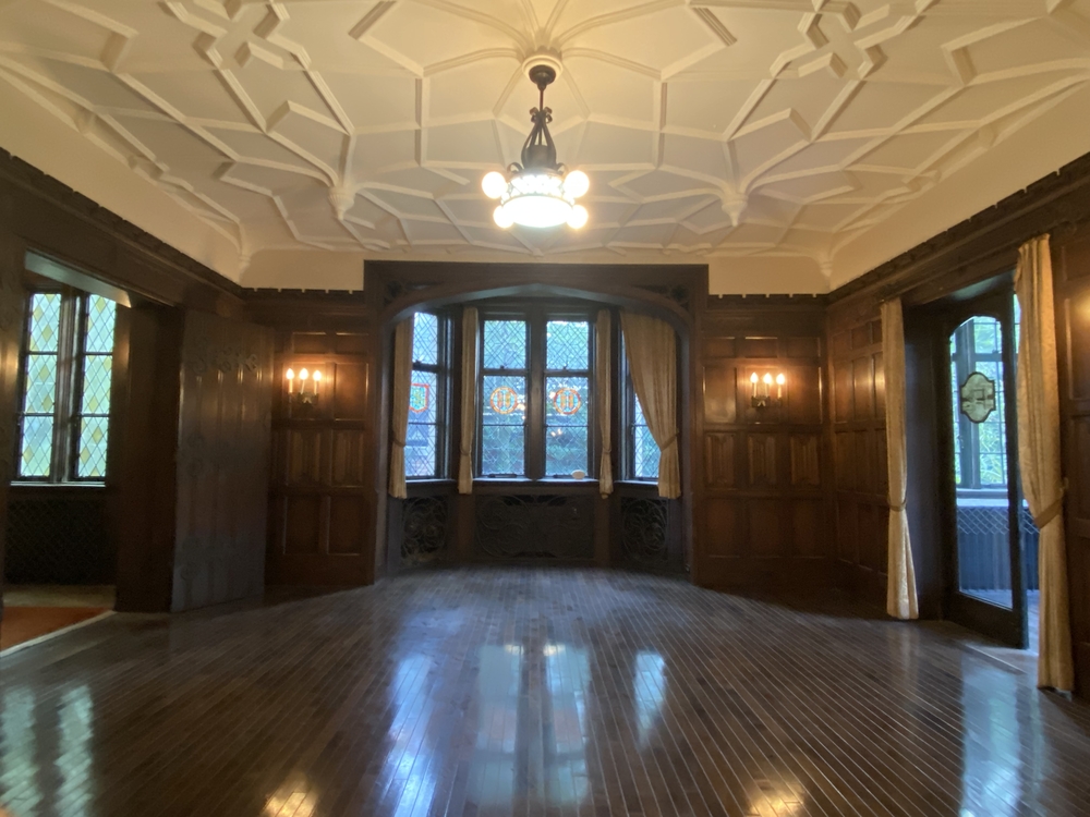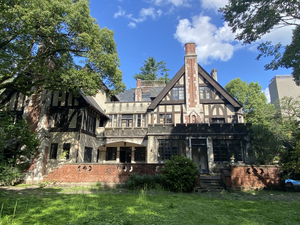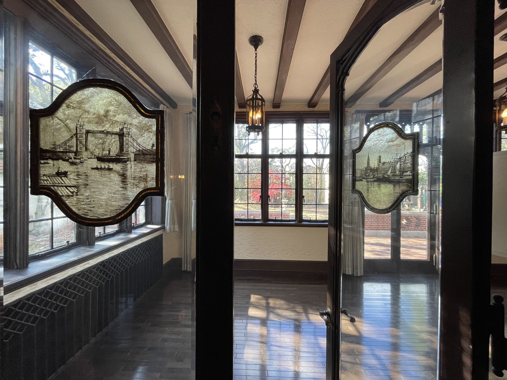 大丸初代社長・下村正太郎氏の邸宅として、ヴォーリズ建築事務所の設計で昭和7年に竣工しました。ハーフティンバーやレンガ積みの壁など、英国のチューダー様式の意匠を取り入れています。豪奢な玄関ホールから、幾何学模様の天井が美しい居間、印象的なマントルピースをもつ食堂、お天気が良ければお庭まで。隅から隅までこだわりぬかれた憧れの大丸ヴィラへ、特別に案内いたします。