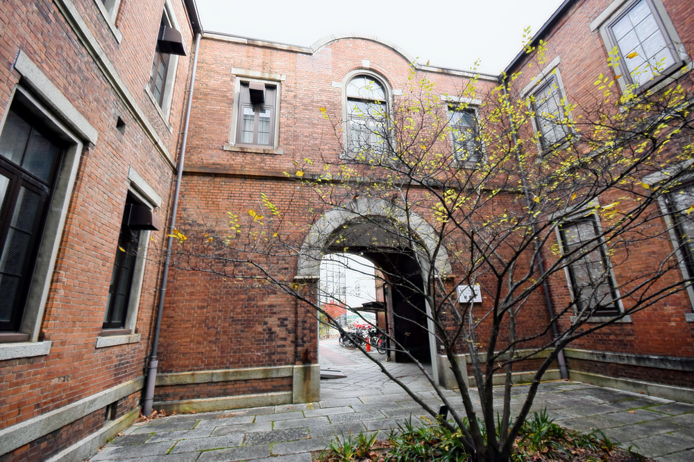 京都市内で最古級のレンガ建築、旧京都織物本社棟へ。明治中期に建てられ、現在は京都大学東南アジア地域研究研究所の図書館として使われています。通常非公開の大学研究施設内部を、東南研の皆さんが特別に案内。近代京都の産業遺産を物語るレトロな赤レンガ建築と、すぐ隣にそびえるモダンな京都大学稲盛財団記念館を内外共に楽しみましょう。