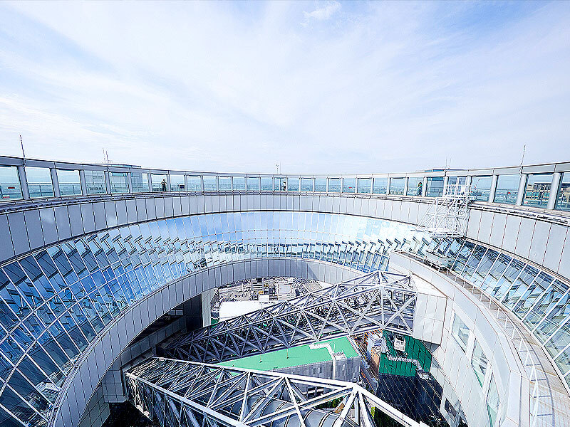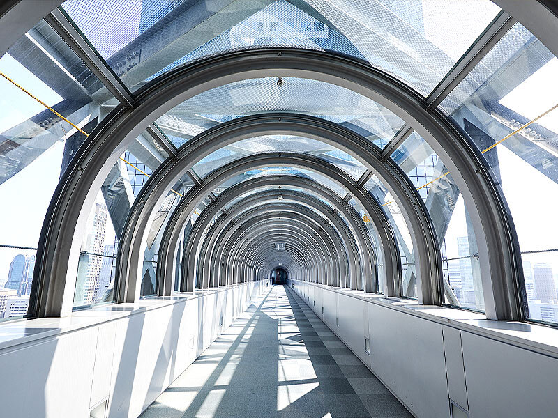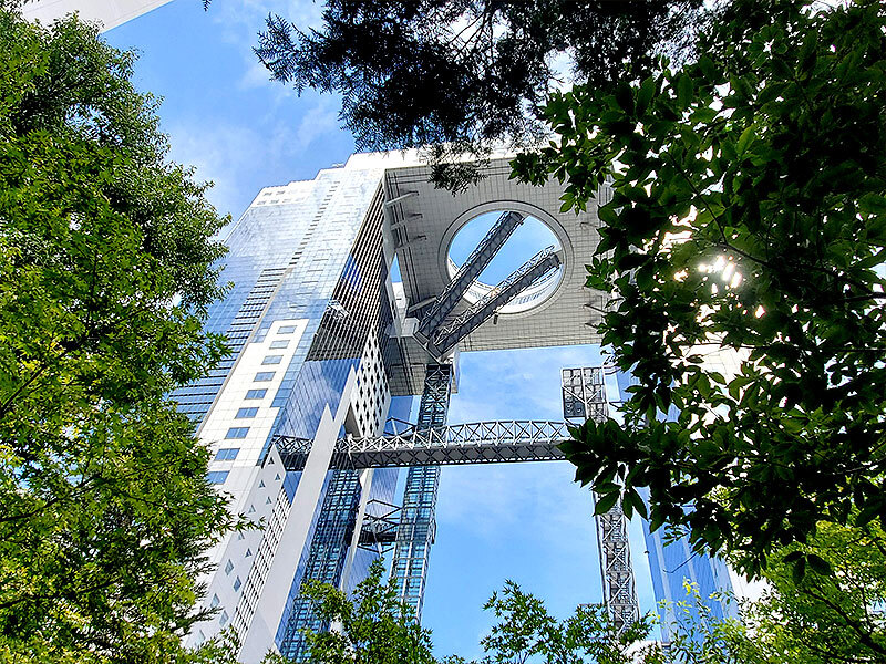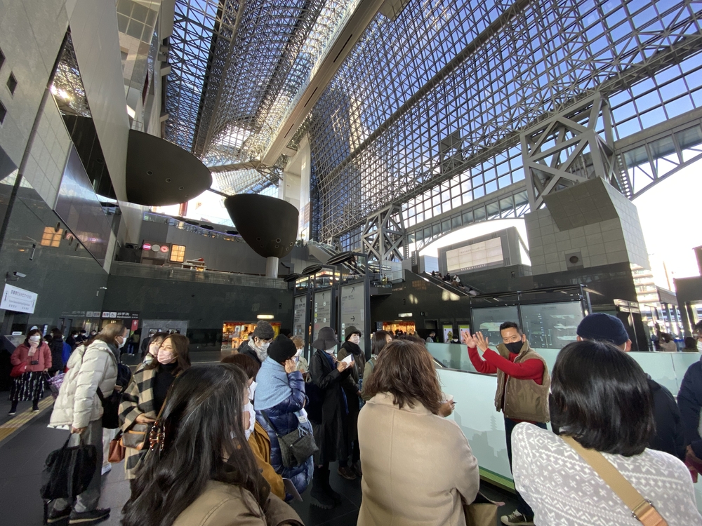 梅田スカイビル(スターポケット → 現代アートギャラリー → 空中ブリッジ → 空中庭園展望台) → JRで電車移動 → 京都駅ビル(烏丸小路広場 → 東広場 → 空中径路 → 大階段) → (解散)