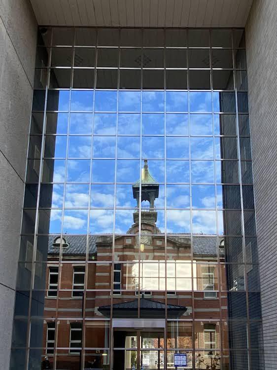 学園祭で賑わうキャンパスの名建築を、建築史家の倉方先生が解説します。大正期に完成した「尋源館」は、赤レンガの趣あるつくりに端正な意匠を備え、今も現役として授業等で使用されています。そして、尋源館を保存しながら、現在の都市型キャンパスの基盤となったのが、建築家・川崎清及び株式会社環境・建築研究所が設計した、仏教経典「無量寿経」由来の名前を持つ「博綜館」。ダイナミックな構成に目を奪われますが、内部も外部に呼応して見どころがたっぷりの建築ツアーが今回、実現しました。近代と現代が呼応する学び舎の今を体感してください。