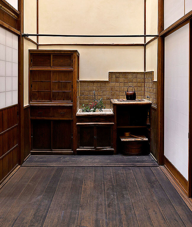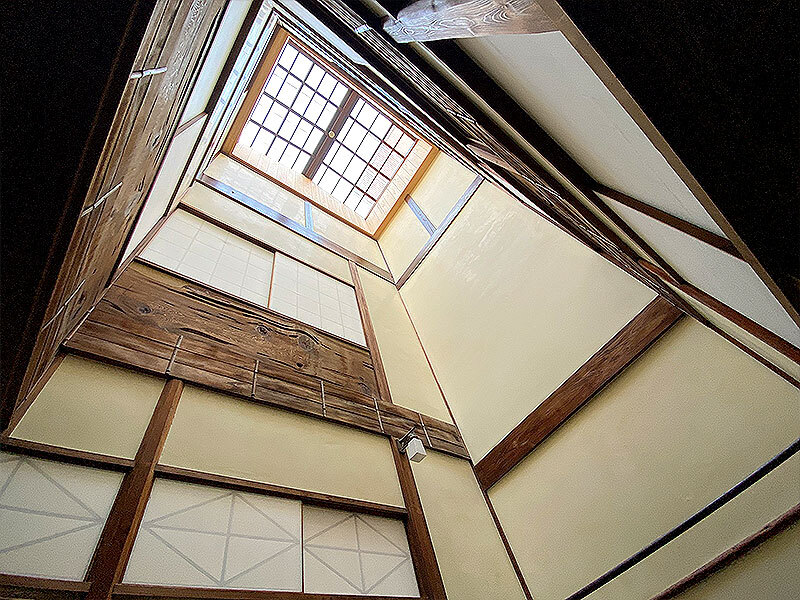 贅を尽くした織元商家の大型町家へ。虫籠窓や格子窓を備えた伝統的な町家づくりながら、中に入れば、絨毯が敷かれたアールデコ風の洋間や、8mを超える圧巻の吹き抜け空間。さらには、貴重な聚楽土を塗って仕上げた茶室まで。設計から造作、すべてにため息がこぼれる藤田家住宅を、当主が隅から隅まで案内します。
