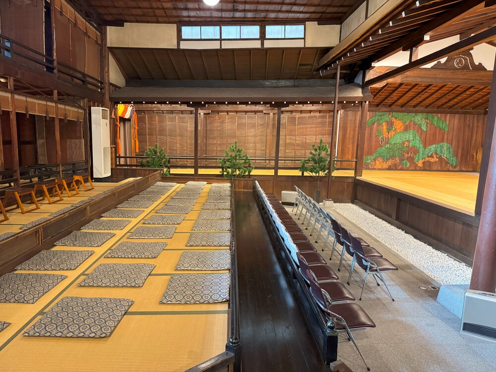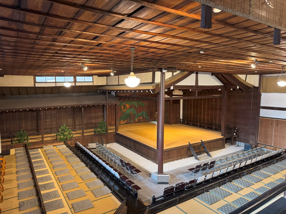 明治期に建てられた京都最古の能楽堂・大江能楽堂。観世流の名門・大江家によって受け継がれてきた空間を案内する特別ツアーです。貴重な能舞台のほか、絢爛精緻な能装束や表情豊かな能面を間近で拝見。また、迫力のプチ実演、扇ひとつで舞う迫力の“仕舞い”もご覧いただけます。建築としての魅力と、能という芸の世界に触れる豊かな時間をお楽しみください。
