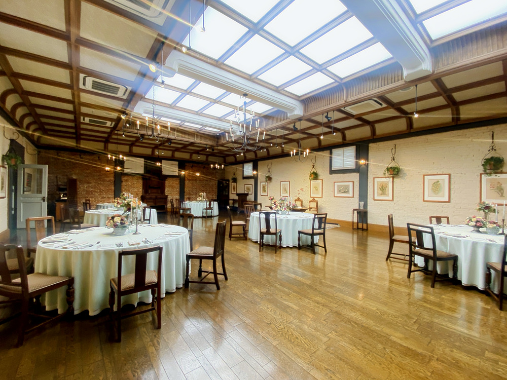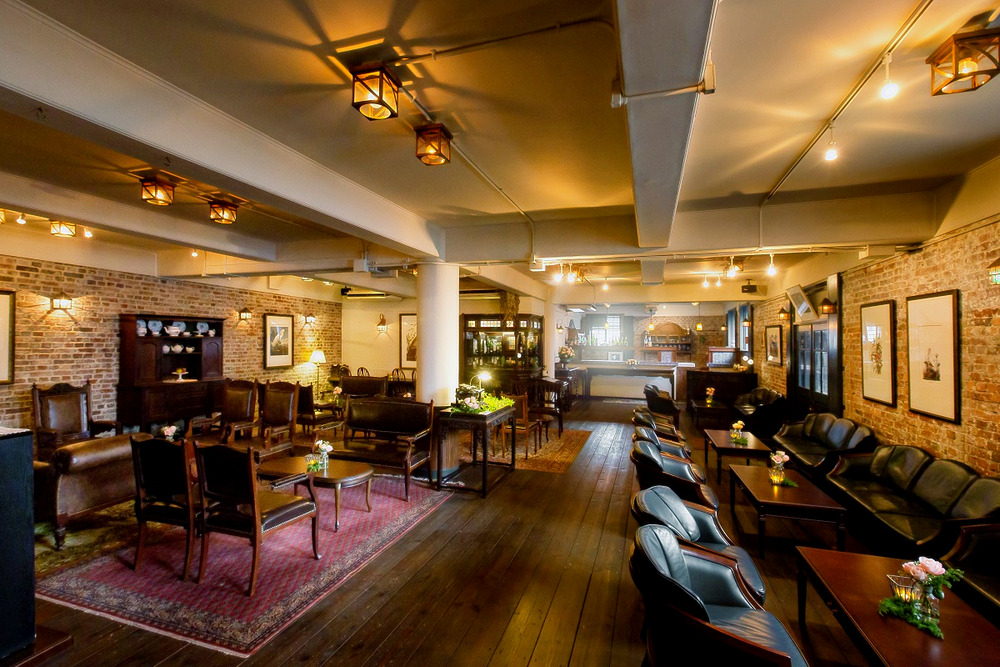 かつて国内最大級の古美術商だった旧山中商会の洋風陳列館を特別案内。パビリオンコートは、海外に東洋美術を輸出していた山中商会の京都支店が独立後、大正9(1920)年に古美術品の陳列館として建てたもの。折上格天井にトップライトを配した洋風陳列館は、京都最初期のレンガ壁鉄筋コンクリート造建築。海外からの顧客も出迎えた貴重な近代建築を、当主とじっくり拝見します。