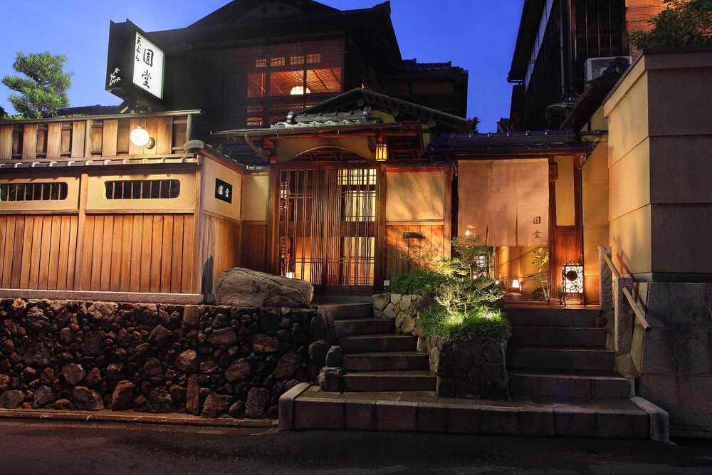 祇園の奥座敷、天ぷらの名店「八坂圓堂」へ。リノベーションを手がけた設計士・野村さんの案内で、開店前の館内を特別見学します。濡れ石畳の路地に、石段の玄関門。先代まではお茶屋だったという築100年を超える伝統的な数寄屋造り建築です。天ぷらコースランチ付き。