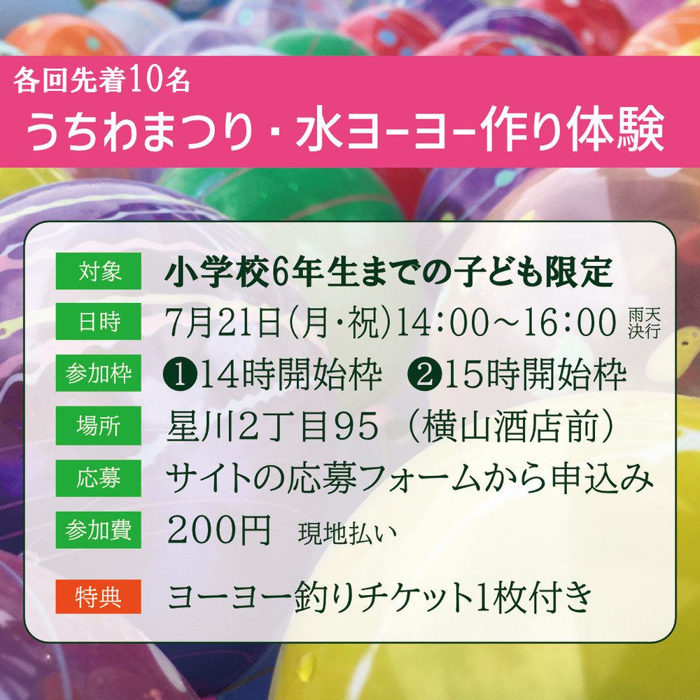 【参加者特典】ヨーヨー釣りが1回遊べる縁日チケットを1枚お渡しします。