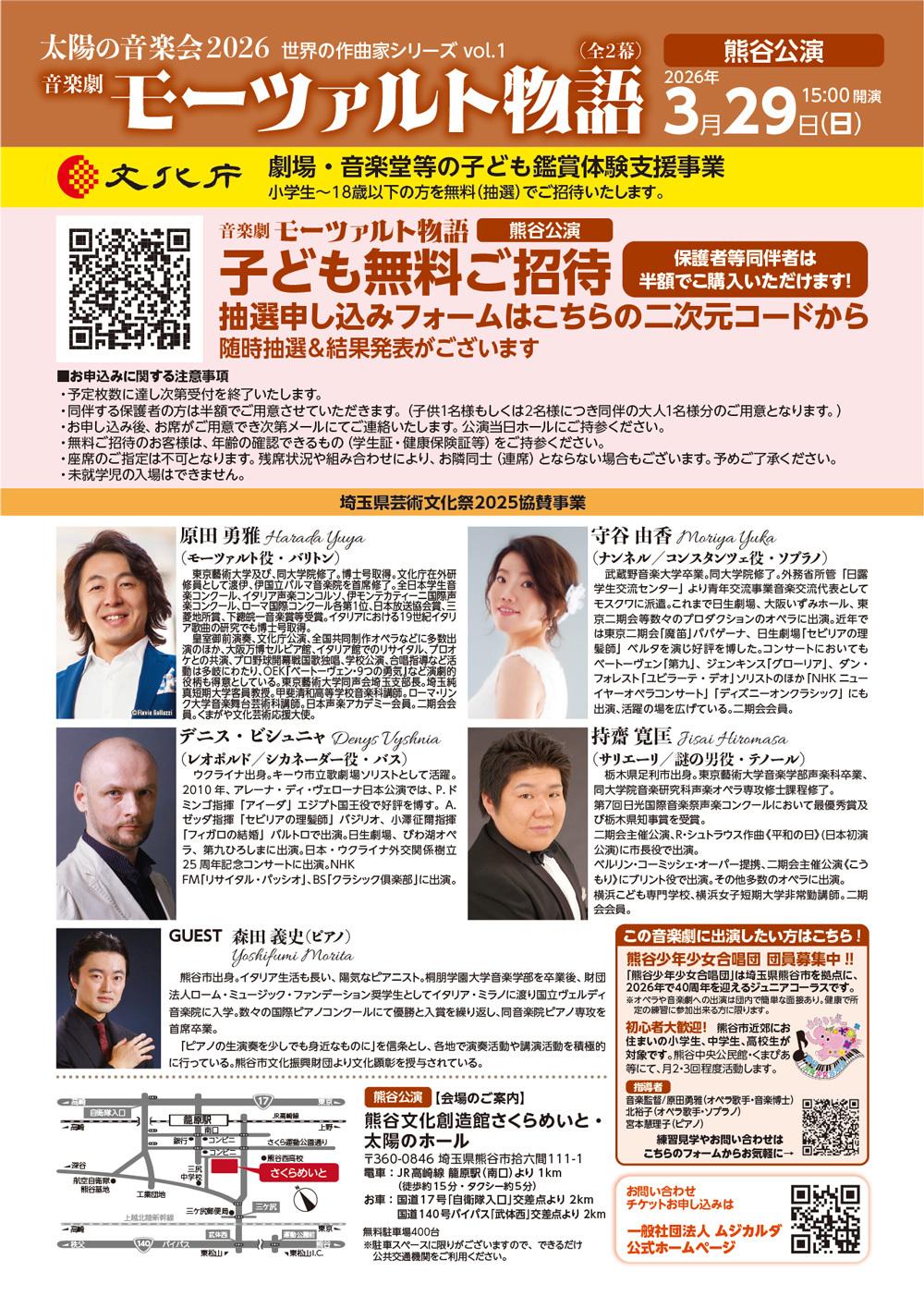 その生涯をたどりながら、第一線の名手の演奏と映像により有名曲を網羅する音楽劇。