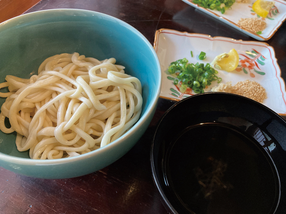 2mを越えるほどの手延べの麺を、椎茸やいりこでとった香り高いだし汁にかぼすを搾って頂きます。