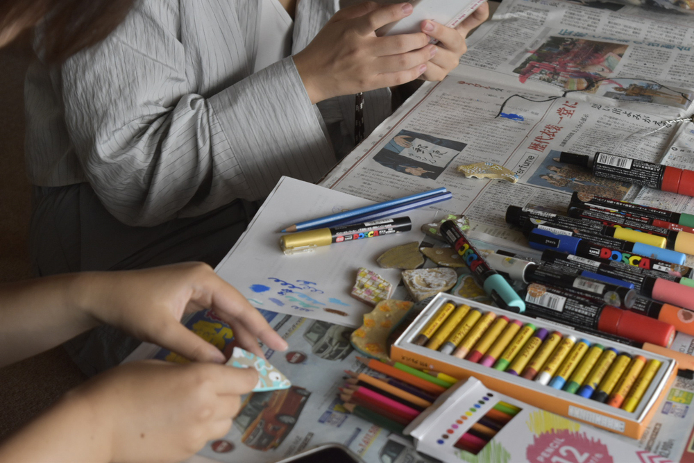 日本画や彫刻、絵画、テキスタイルなどそれぞれ違った素材や技術で制作している4名の作家によるミニワークショップでモビールのモチーフを作っていただけます。