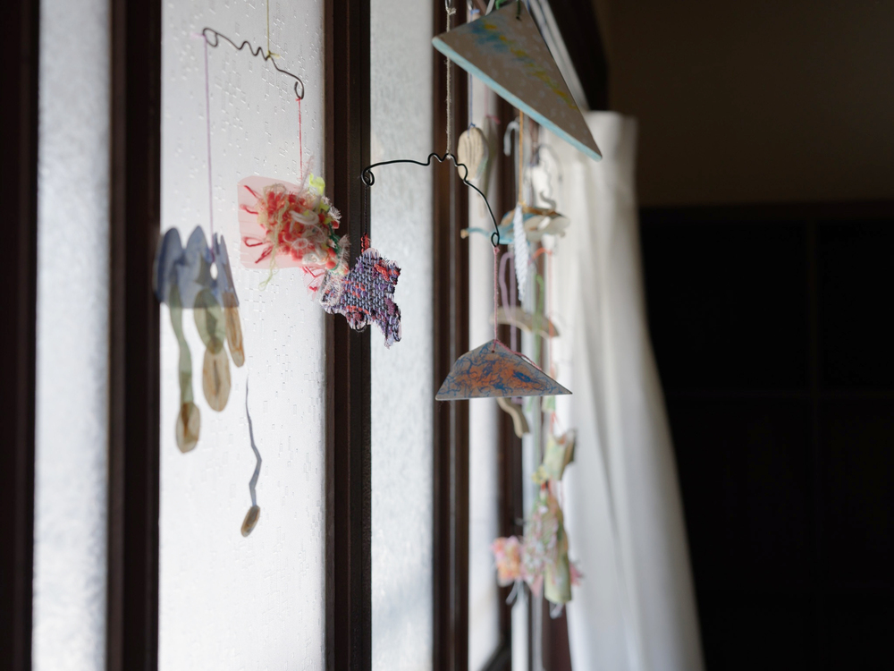 日本画や彫刻、絵画、テキスタイルなどそれぞれ違った素材や技術で制作している4名の作家によるミニワークショップでモビールのモチーフを作っていただけます。