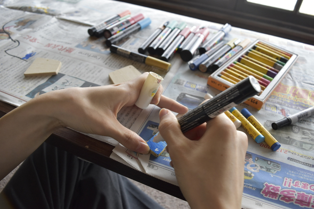 ・色で遊びながら、クレパスや色鉛筆を使って木材にペイントしよう!☆