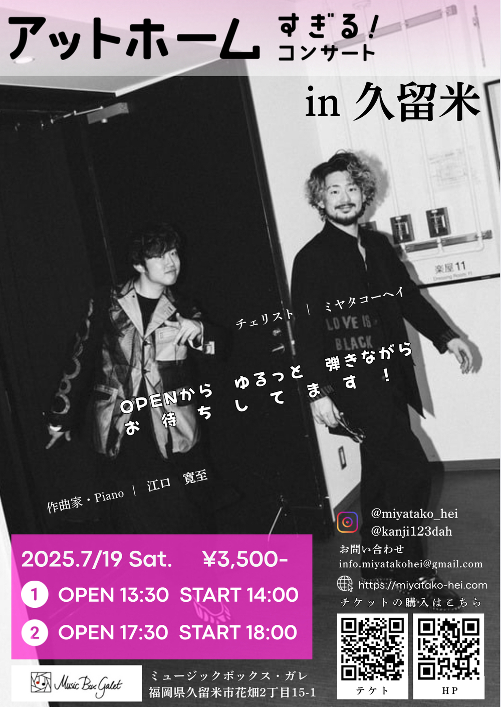 東京開催でおなじみの「アットホームすぎるコンサート」を久留米で開催します!
