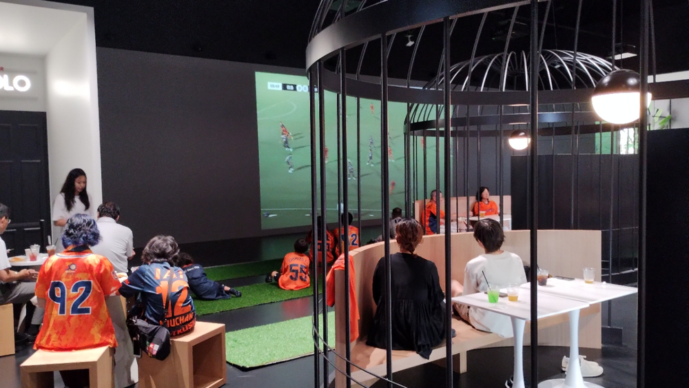 清水エスパルスのJ1百年構想リーグの アウェー戦を可能な限り静岡市七間町のカフェ&CHILLにてパブリックビューイングを開催。