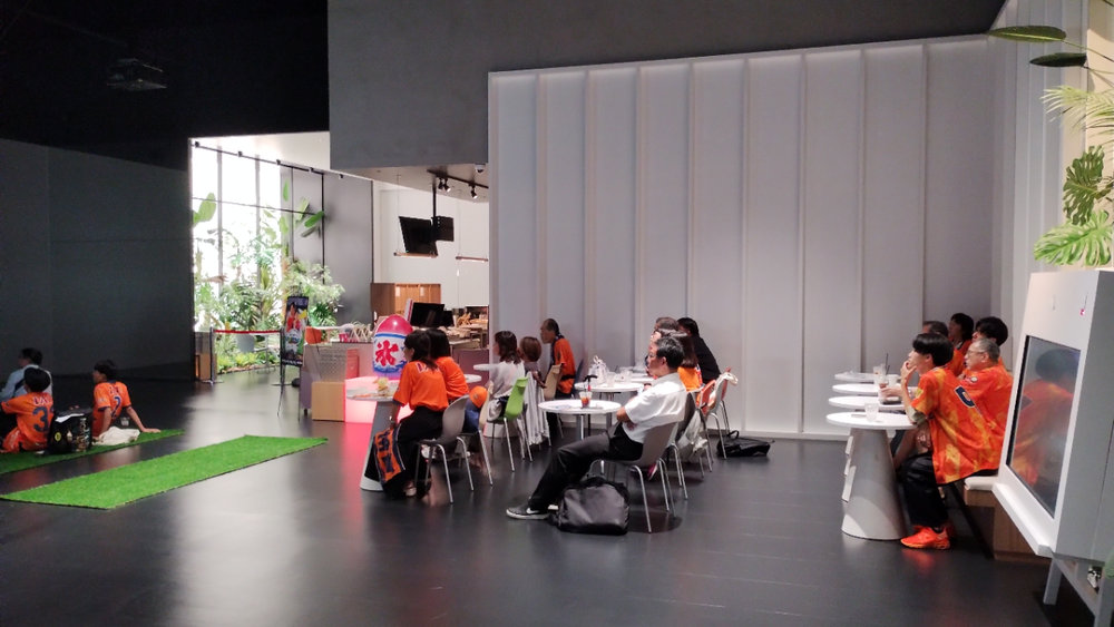 藤枝MYFCのJ2・J3百年構想リーグの アウェー戦を可能な限り静岡市七間町のカフェ&CHILLにてパブリックビューイングを開催。