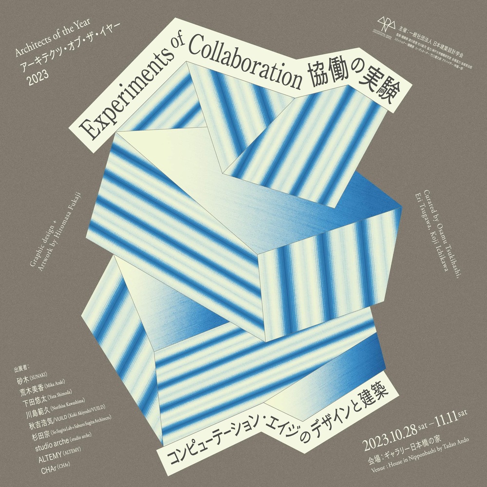 毎年開催されているアーキテクツ・オブ・ザ・イヤーですが、今年のテーマは「協働の実験ーコンピューテーション・エイジのデザインと建築ー」です。インターネットのネイティブ世代である30~40代の建築家や研究者とともに、建築・都市の現在・未来について対話を重ねながら、デジタル技術を通した「協働の実験」の最新状況と可能性について考える展覧会となっております。なお本展は10月28日(土)、29日(日)に開催される「生きた建築ミュージアムフェスティバル大阪(イケフェス大阪2023)」の連動プログラムです。