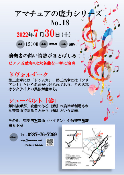 弦楽亭では、アマチュアが練習の成果を披露する1年に1度のアマチュアの底力シリーズを開催、今年で18回目となります。