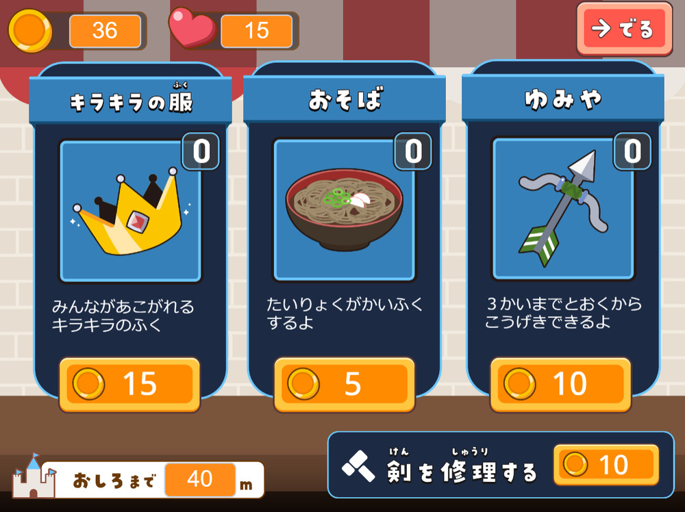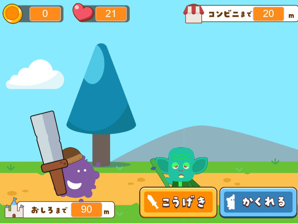敵を倒してコインを稼ぎ、使う・守る・貯めるを考えながらお城を目指す冒険ゲーム「コインジャーニー」。遊びながら、お金を扱う上で大切な4つの力を体験できるよ!