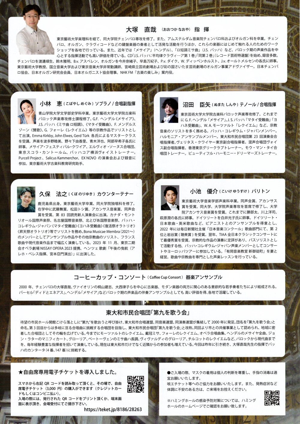 【独唱】小林恵(ソプラノ)、久保法之(アルト)、沼田臣矢(テノール)、小池優介(バス)