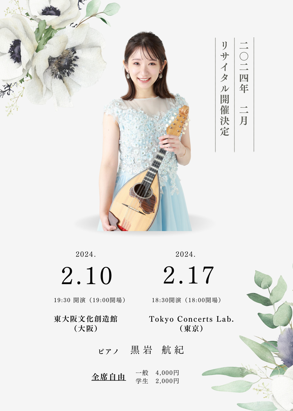マンドリンを井上泰信氏に師事。 3歳よりヴァイオリンを樋口育世氏に、ピアノを田村和子氏に師事。15歳よりマンドリンクラブでマンドリンを始め、2018年日本マンド…