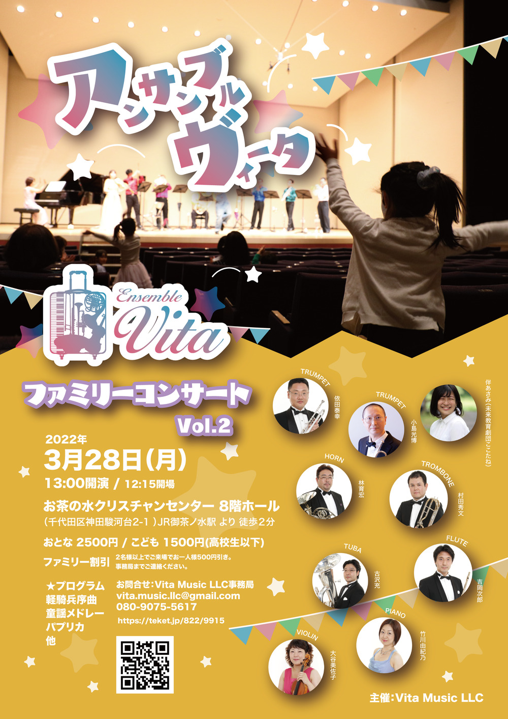 最小限の人数で最大限の幸せを皆様に! がモットーのEnsemble Vita(アンサンブル・ヴィータ)は、2Trumpet、Horn、Trombone、Tub…
