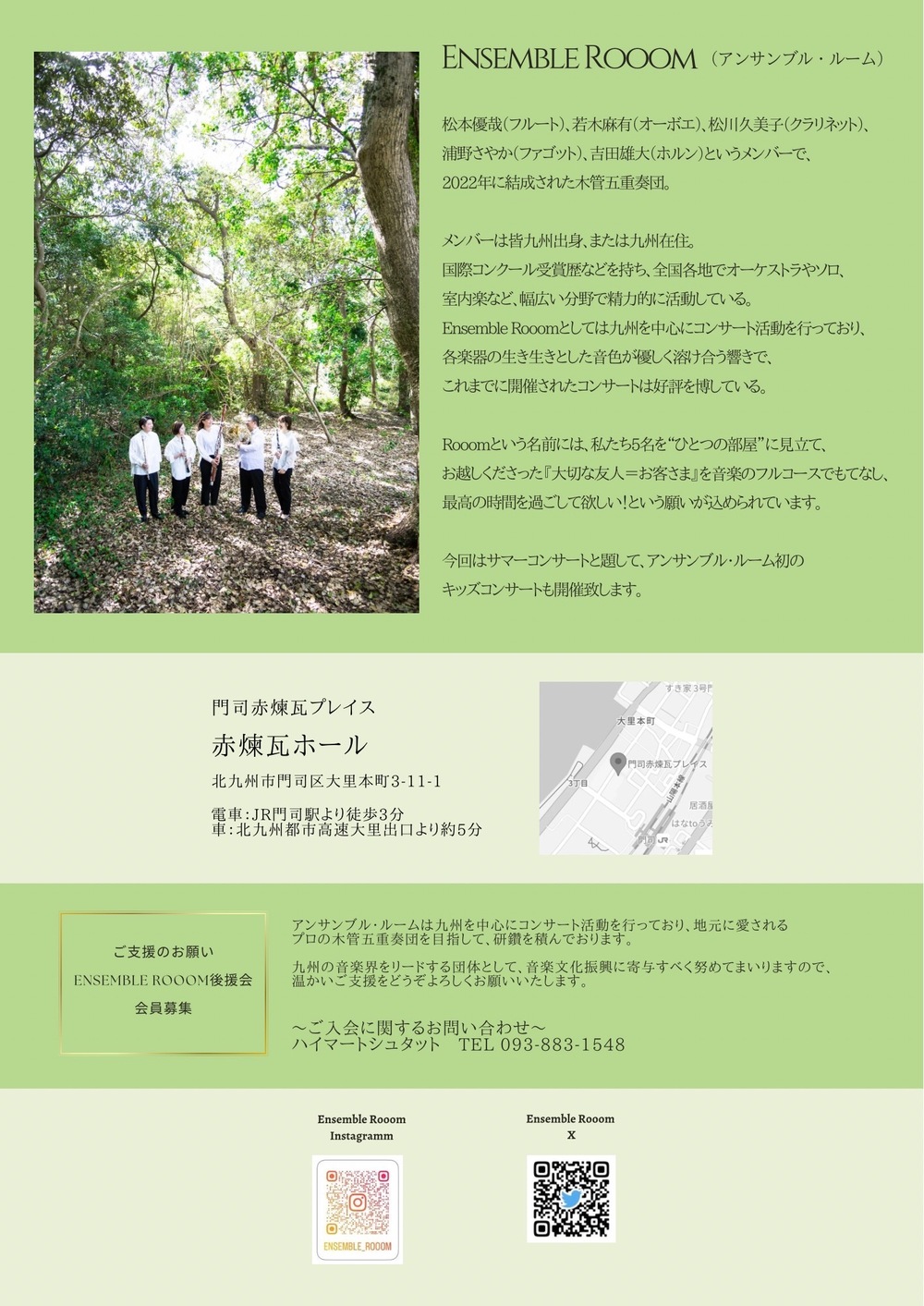 福岡を中心に活動する木管五重奏・Ensemble Rooom(アンサンブル・ルーム)です。