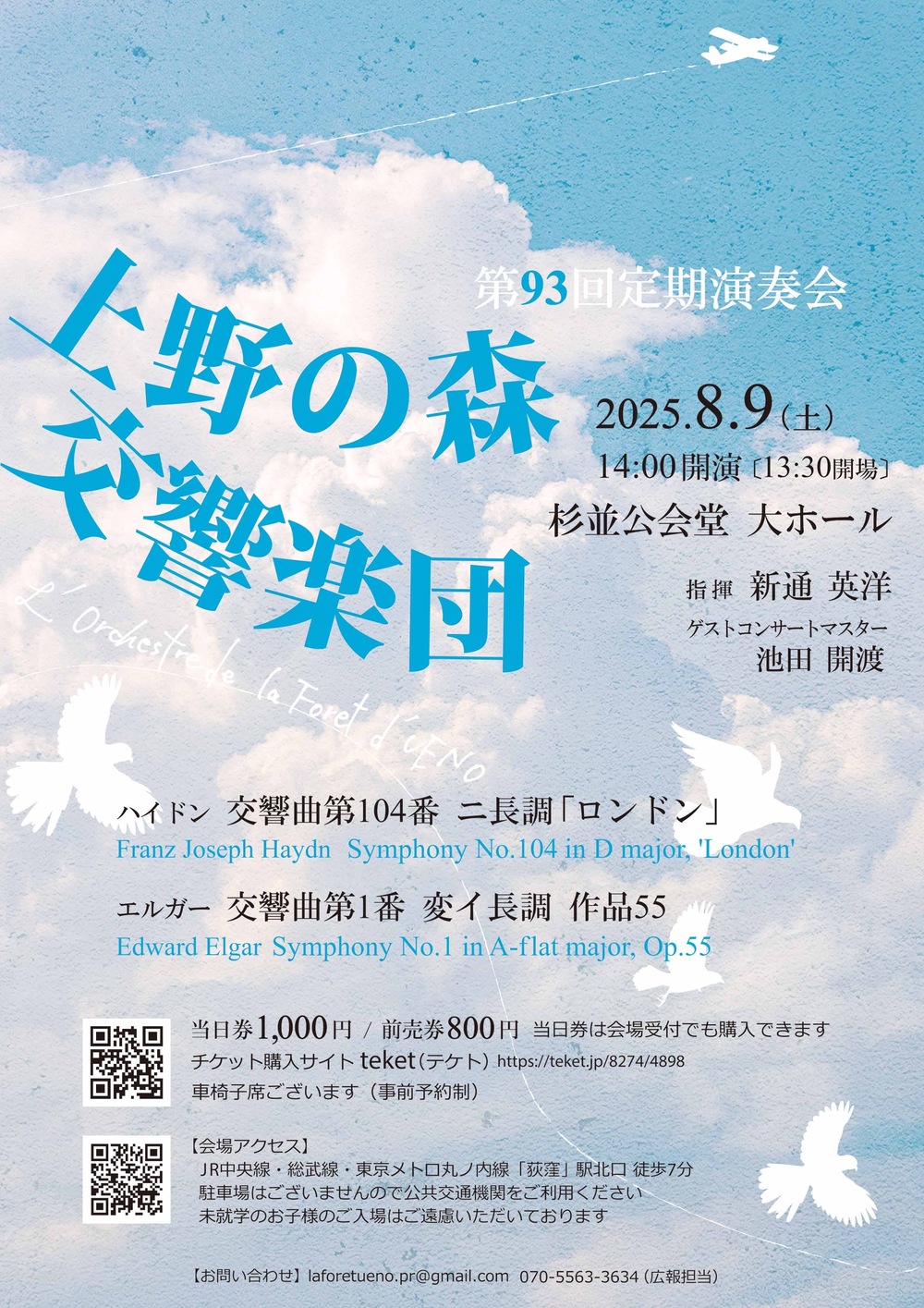 上野の森交響楽団広報(laforetueno.pr@gmail.com)まで気兼ねなくご連絡ください。