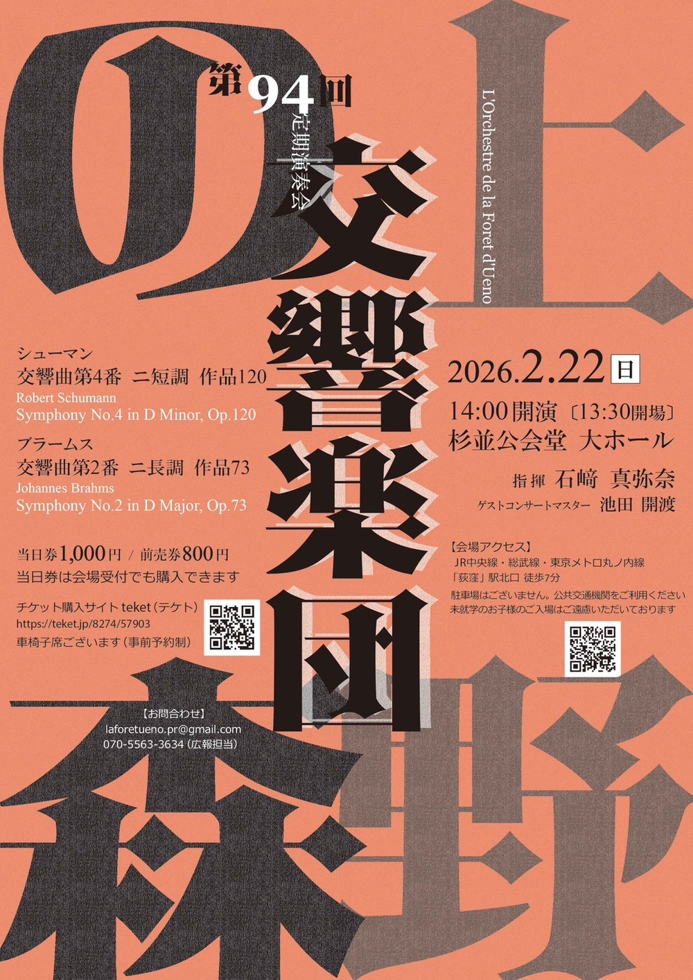 上野の森交響楽団広報(laforetueno.pr@gmail.com)まで気兼ねなくご連絡ください。
