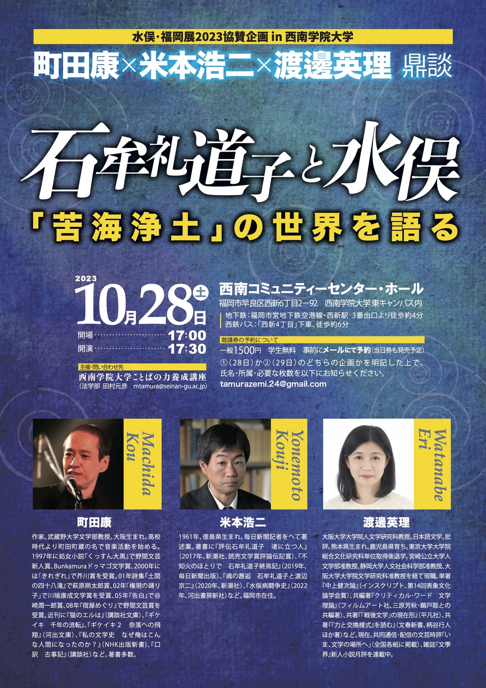 その歴史と、水俣病闘争に随伴し、時として牽引した石牟礼道子の思想と文学を読み解きつつ、わたしたちに手渡された問いをどのように引き継ぐことができるのか、対話します。