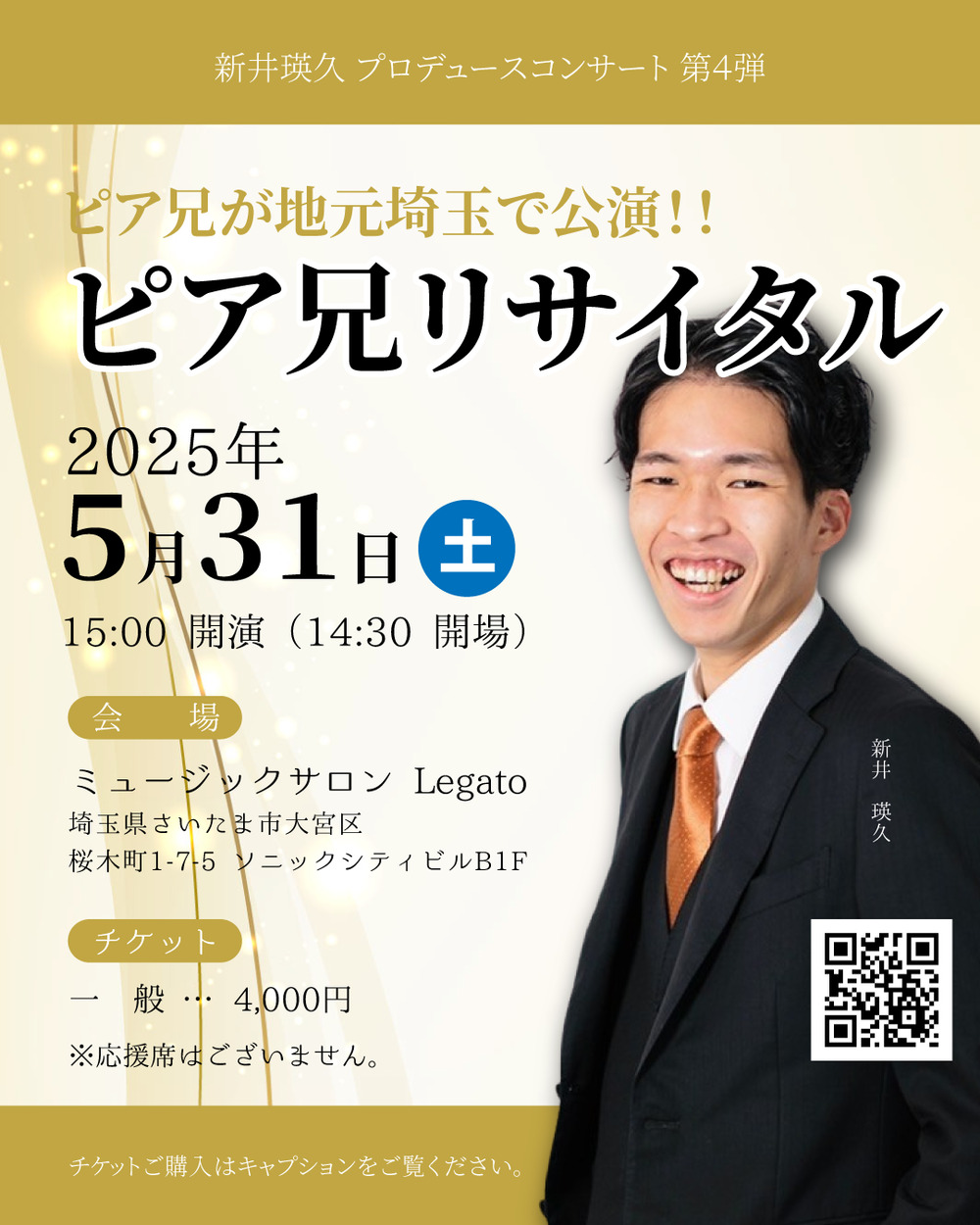 名古屋公演ソロピアノのプログラムを埼玉でも!!