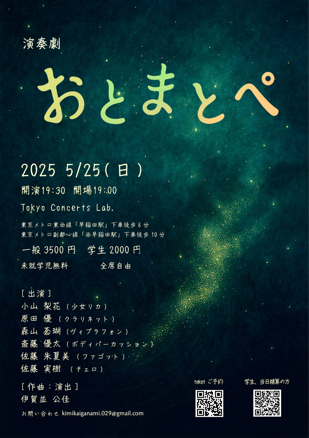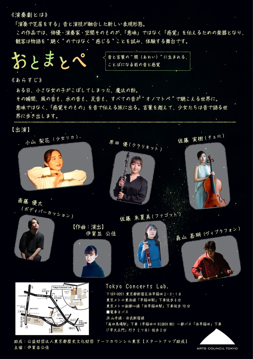 演奏劇とは、「演奏で芝居をする」音と演技が融合した新しい表現形態。