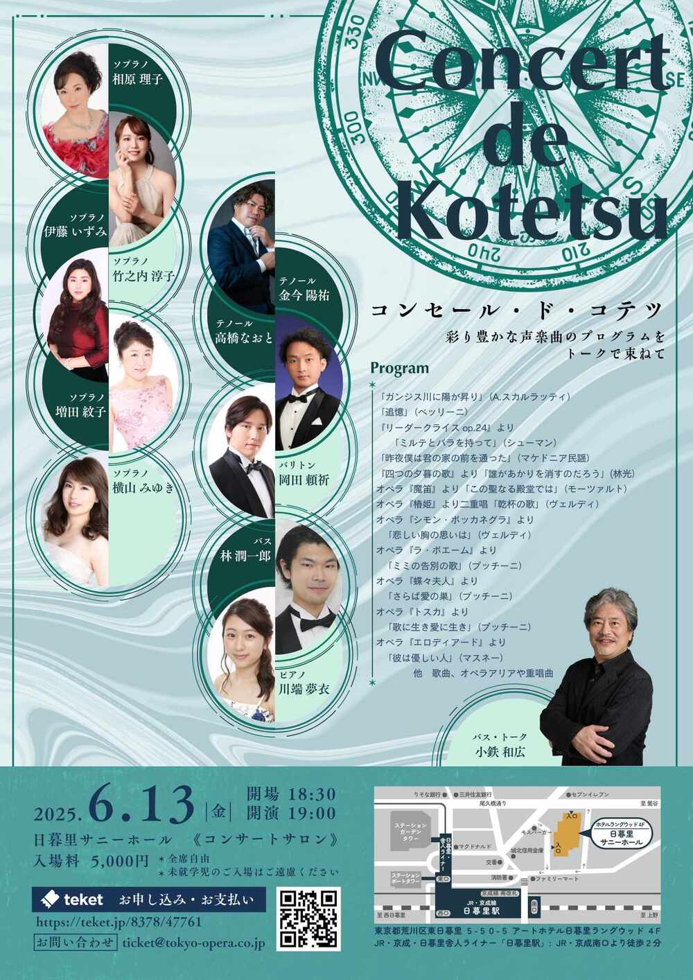 若手の個性豊かな歌手たちが集い、バラエティ豊かな声楽曲を、司会の小鉄和広の軽妙なトークによるナビゲーションでお届けするシリーズです。
