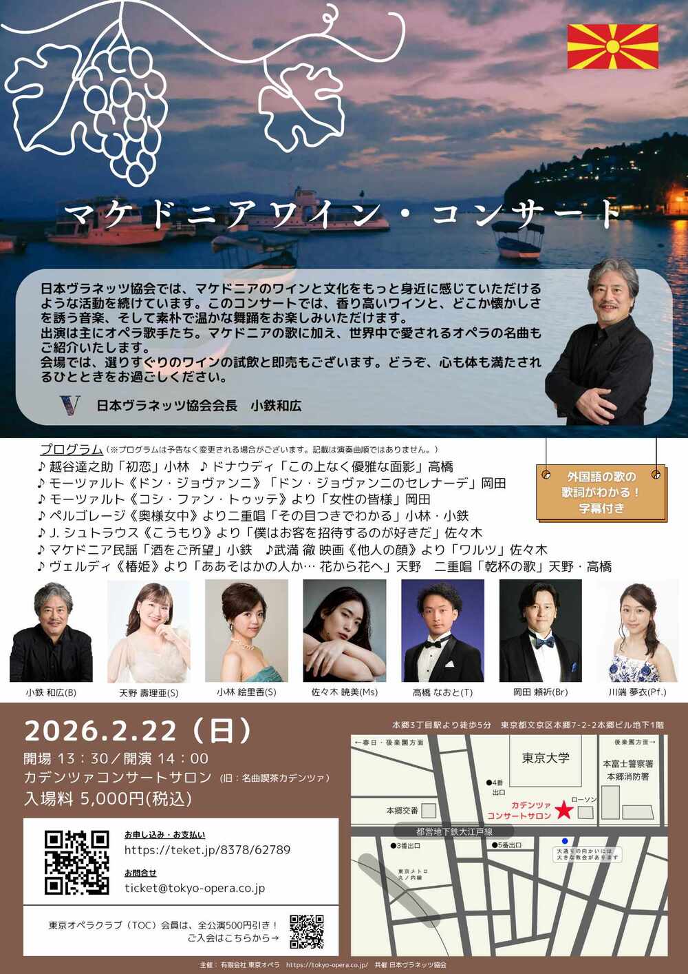マケドニアワイン・コンサートは、マケドニアのワインや文化に触れ、同好の皆様と交流する、同協会の企画です。また、有限会社東京オペラによる、マケドニアワイン即売会も開催されます。