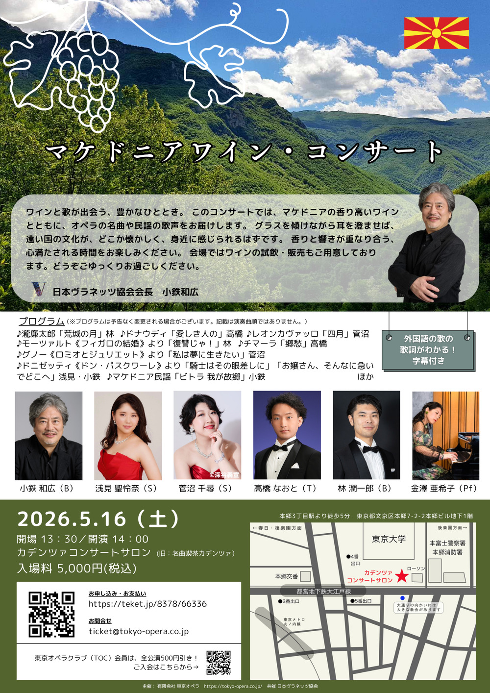 マケドニアワイン・コンサートは、マケドニアのワインや文化に触れ、同好の皆様と交流する、同協会の企画です。また、有限会社東京オペラによる、マケドニアワイン即売会も開催されます。