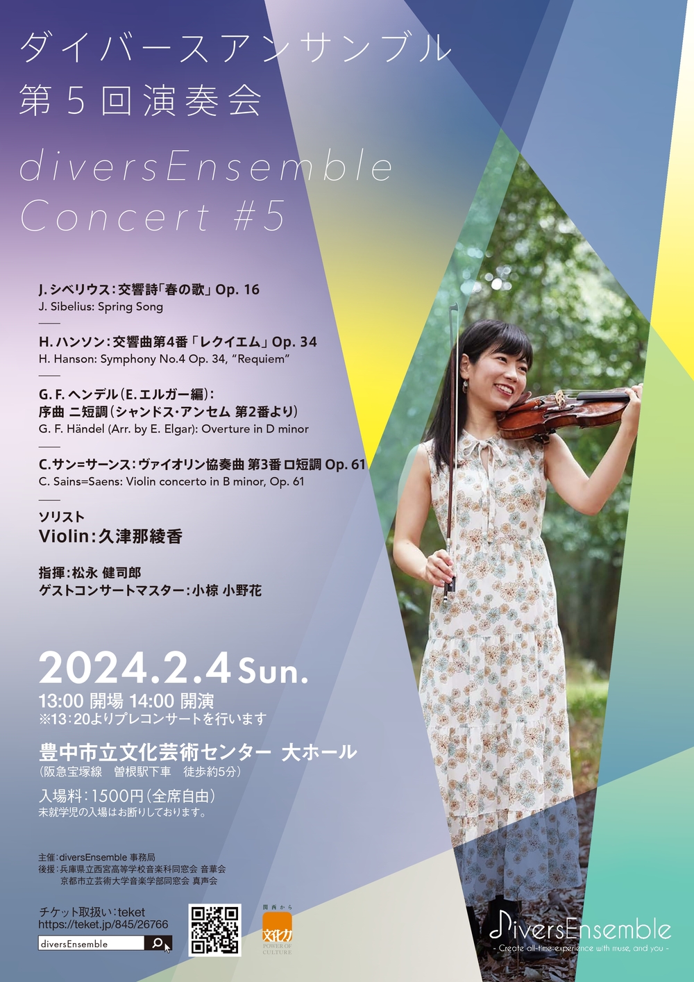 節目の5回目となる今回、これまでdiversEnsemble のゲストコンサートマスターとして屋台骨を支えてきた久津那さんが、満を持してソリストとして登場!