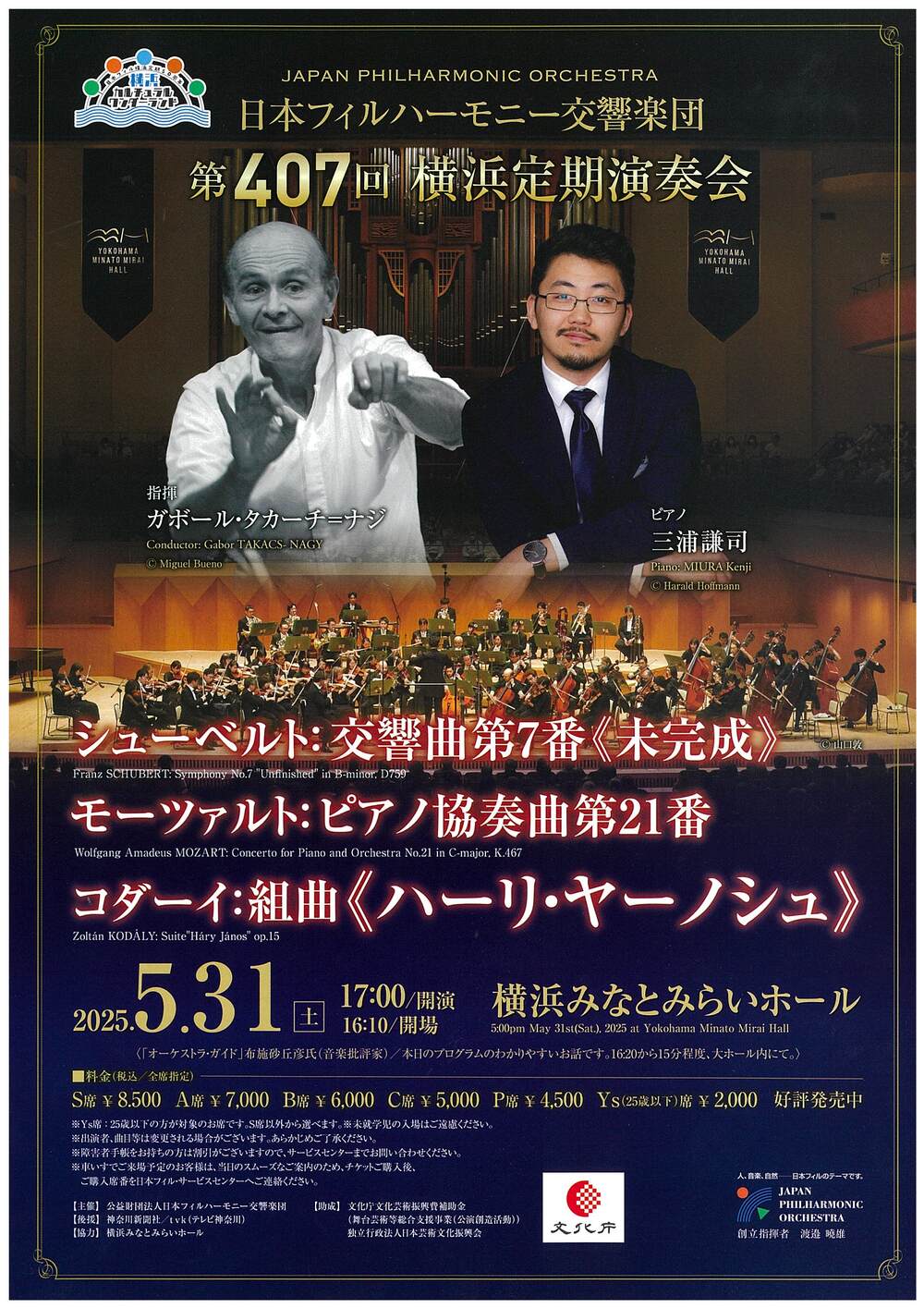 指揮のガボール・タカーチ=ナジは、拠点の一つであるヴェルビエ祝祭室内管弦楽団と共に名門レコード会社ドイツ・グラモフォンにベートーヴェンの交響曲全集を録音したり、同地での音楽祭においてアルゲリッチやマイスキーといった著名演奏家と共演を重ね、あつい信頼を集めているまさに「名匠」です。今回は彼が得意とする古典派、初期ロマン派の作品と、自身のルーツであるハンガリーの作曲家コダーイが書いた絢爛豪華な管弦楽作品「ハーリ・ヤーノシュ」をお贈りいたします。モーツァルトの協奏曲には、ヨーロッパを中心に活躍する才能あふれるピアニスト三浦謙司を迎えます。