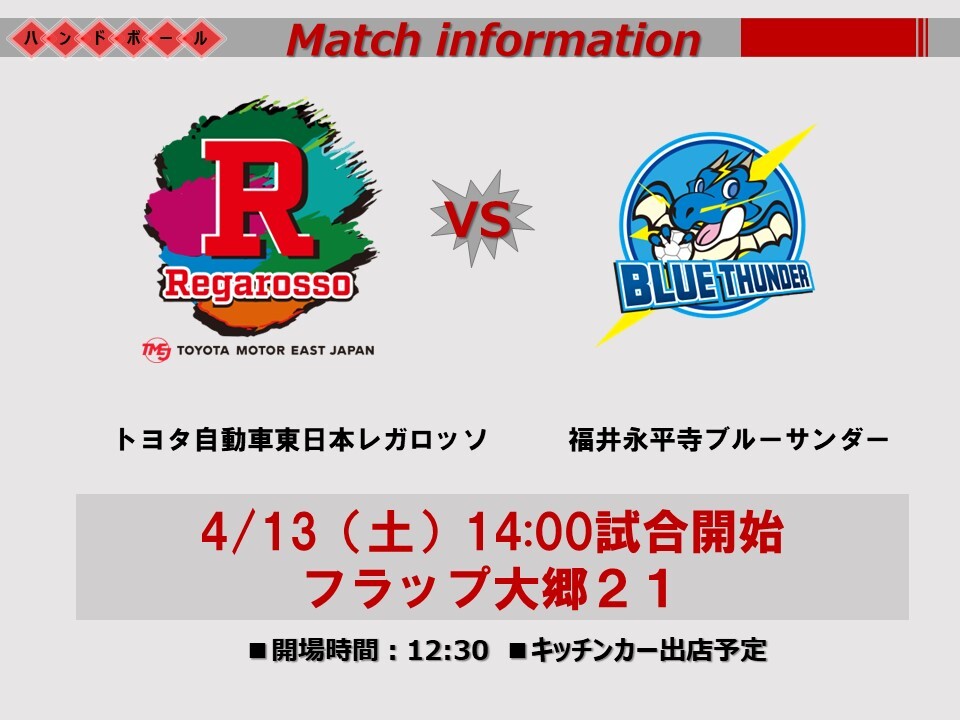 2024年4月13日(土) 12時30分開場 14時00分試合開始