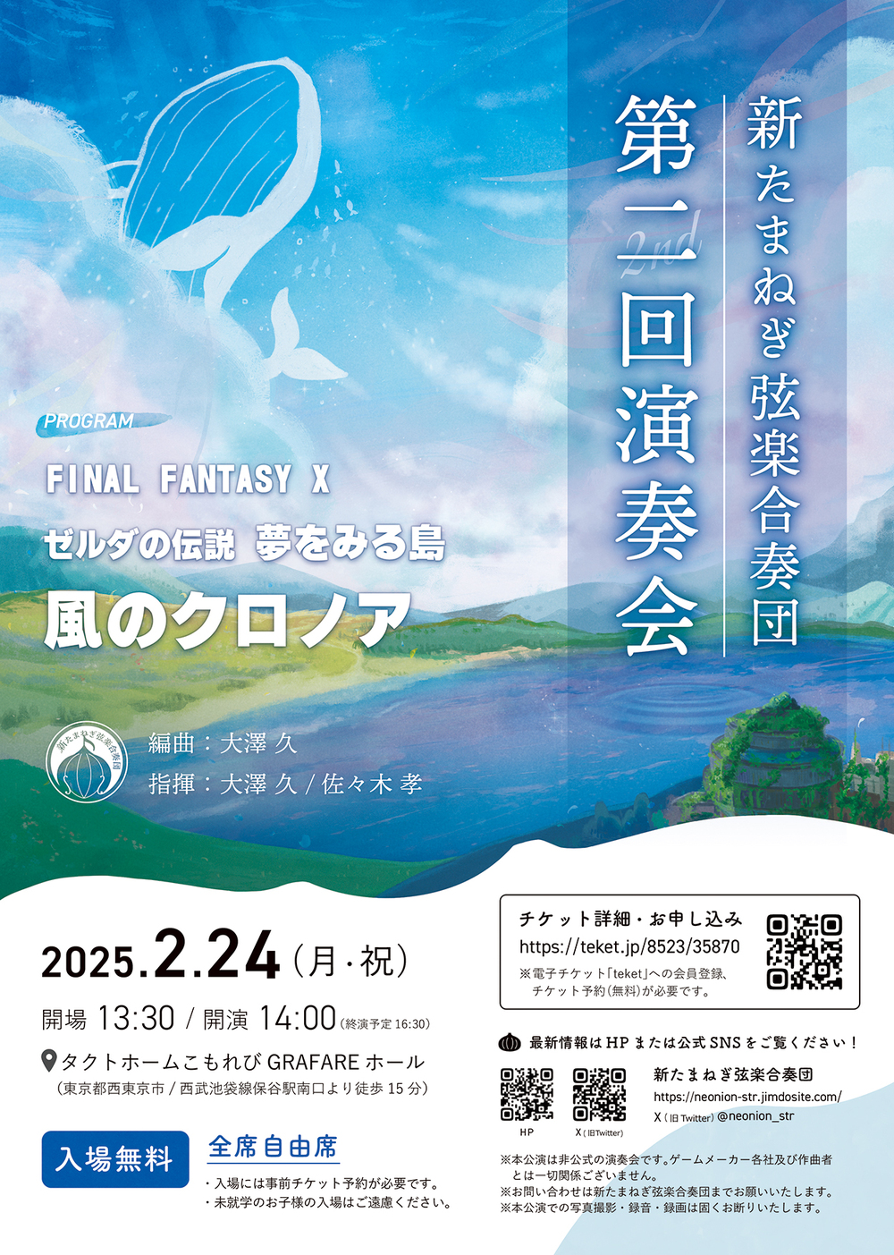 新たまねぎ弦楽合奏団 第2回演奏会開催が決定しました!今回は「夢」をテーマにした3タイトルをお届けします。ぜひお越しください。